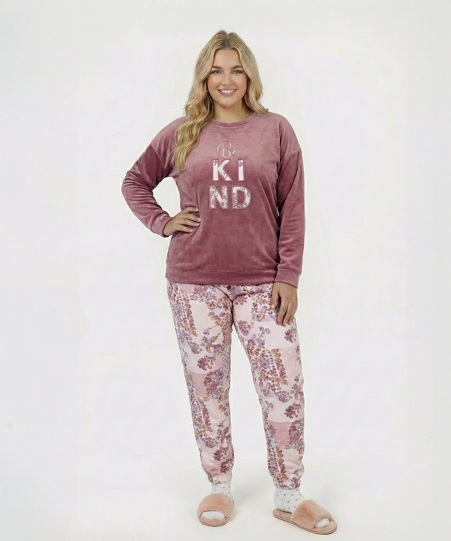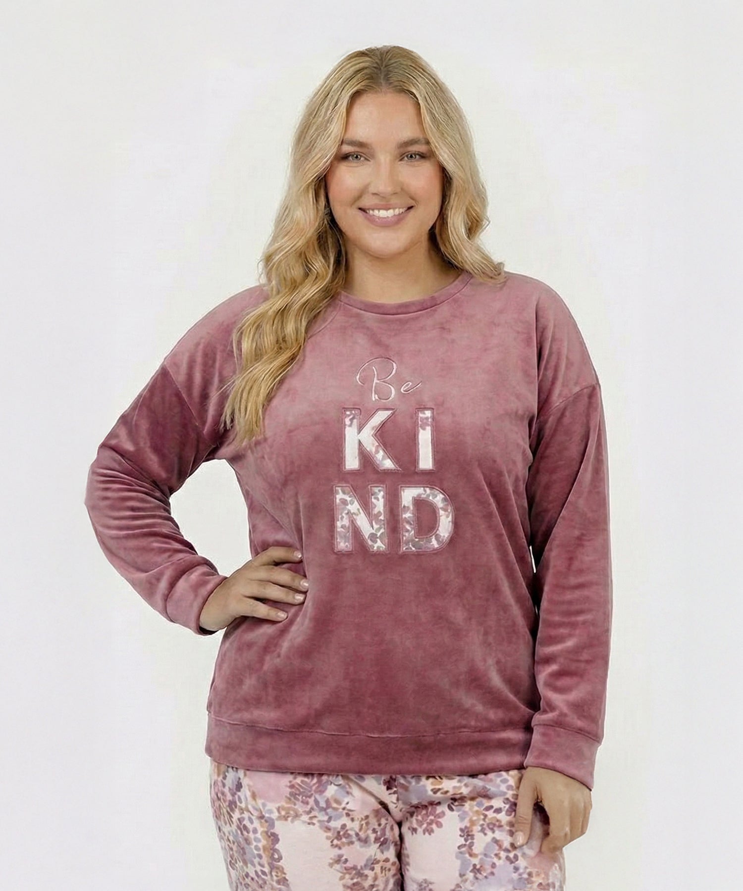 القطعة العلوية تأتي بلون روزي هادئ مناسب للشتاء والراحة.