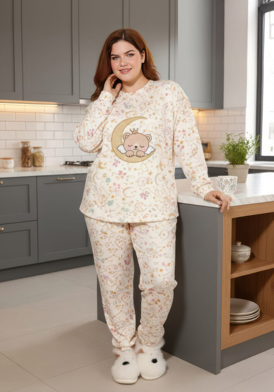 بيچامة شتوية ناعمة جدًا من قطيفة هايدي وشين مستورد، بتصميم أنثوي دافئ مناسب لأجواء الشتاء الباردة.