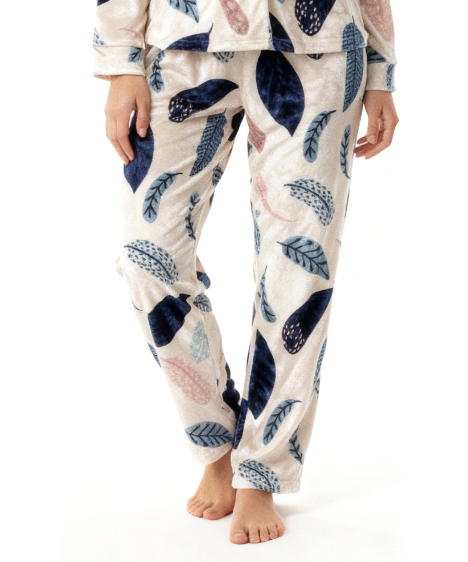 بنطلون طويل بنفس النقشة، بوسط مطاطي لتناسب جميع المقاسات مع حرية حركة كاملة.
