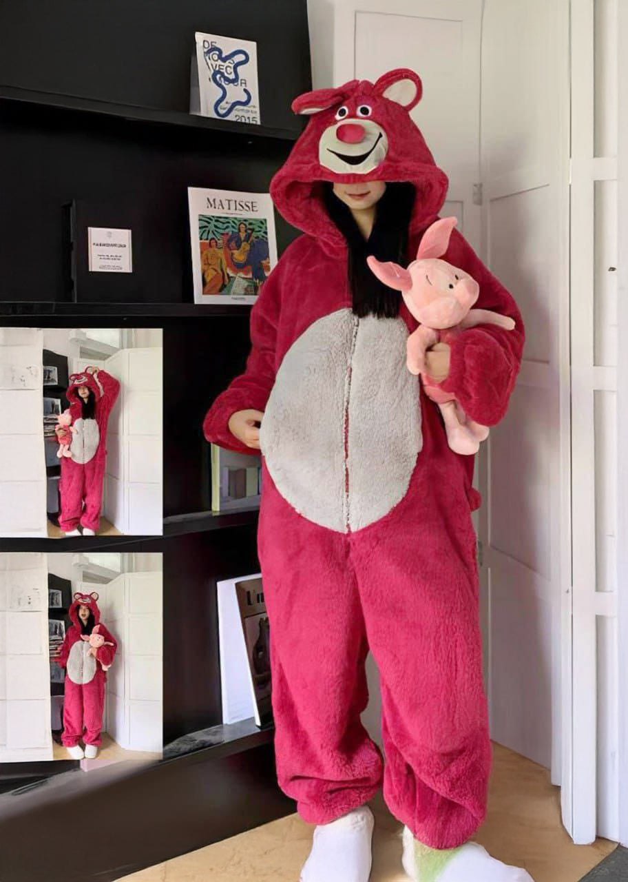 القطع: أوفرول كامل بغطاء رأس على شكل دبدوب