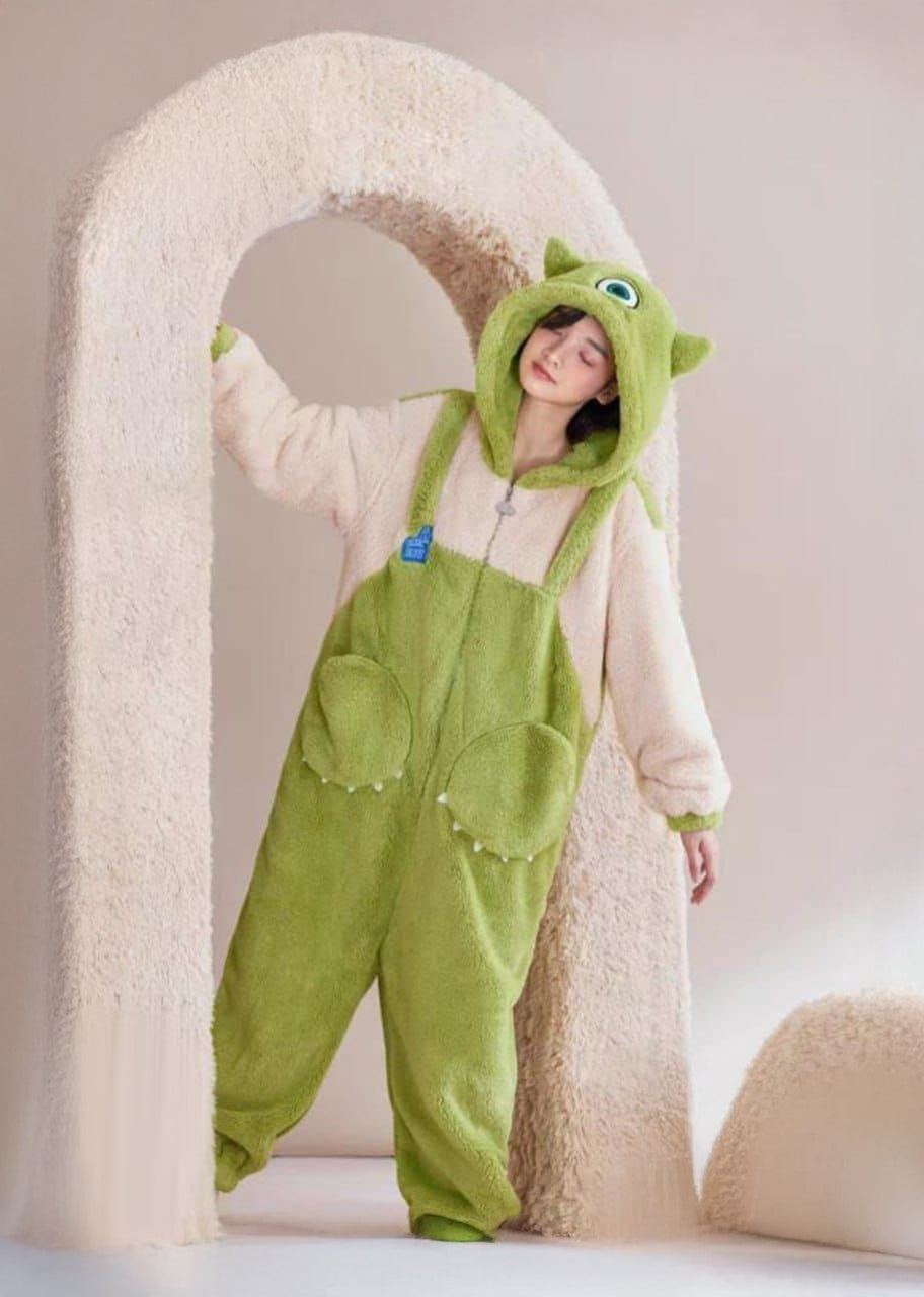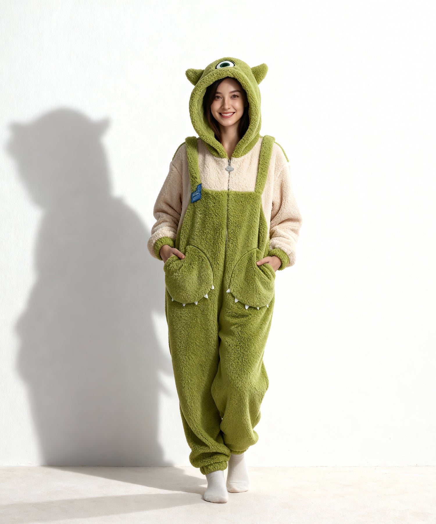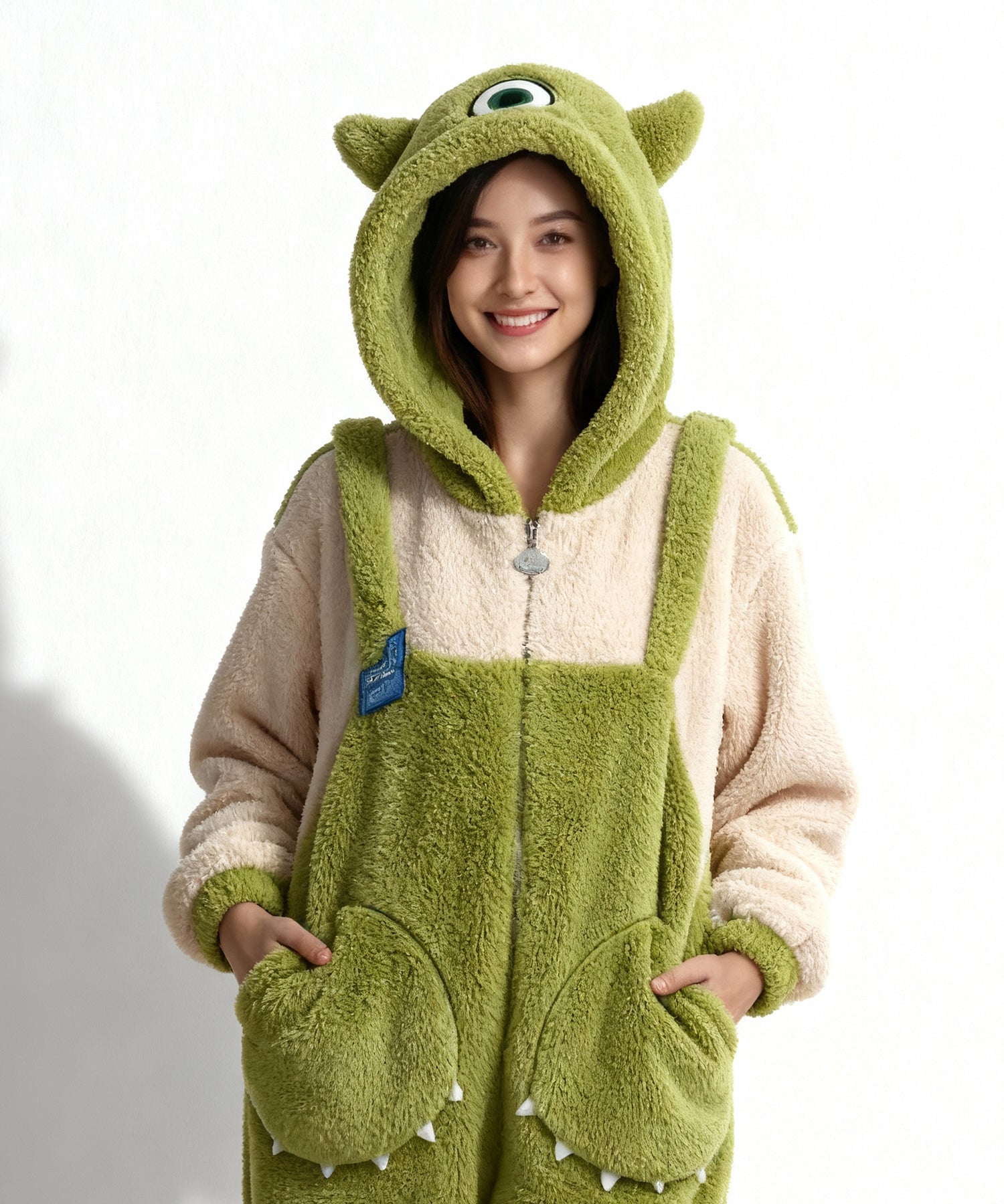 القطع: أوفرول كامل بغطاء رأس بعين واحدة وشكل وحش لطيف